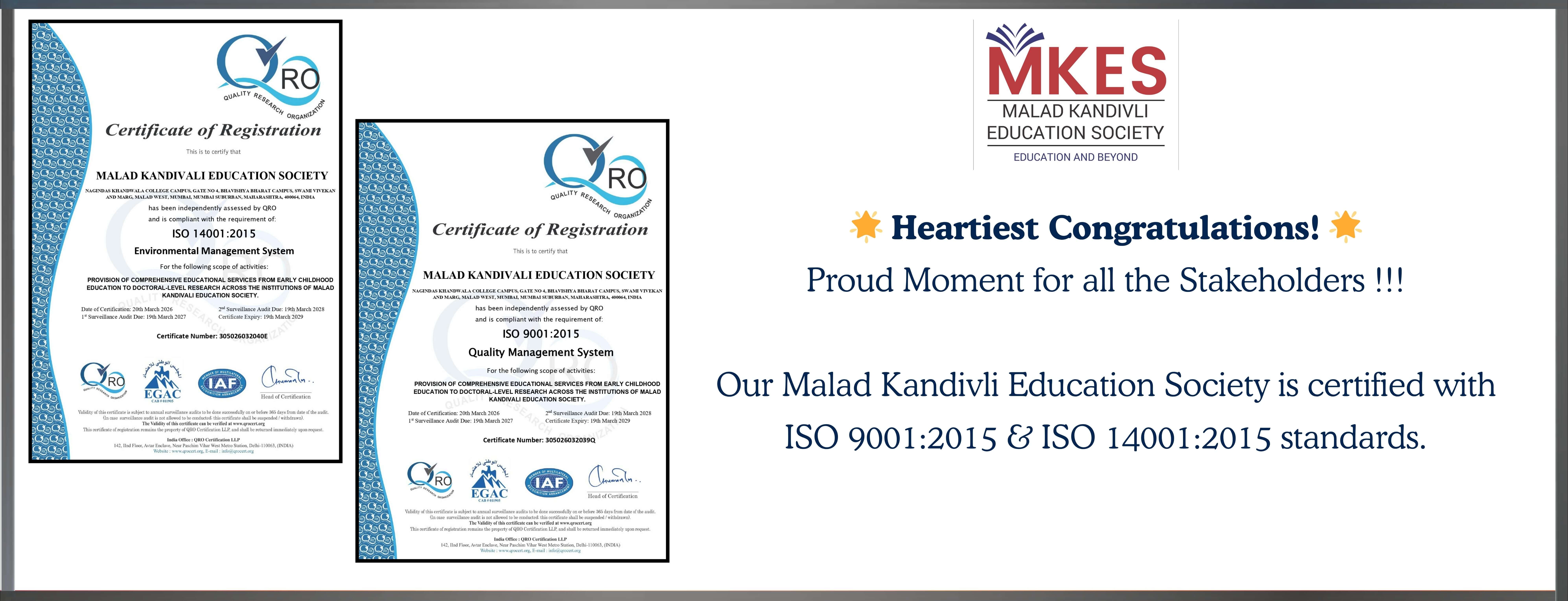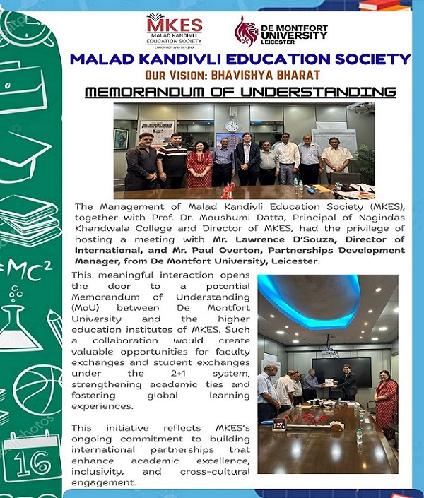 The Malad Kandivli Education Society (M.K.E.S.) has been rendering valuable services in the field of education to the residents of Malad and Kandivli for the last 80 years. It started the Sheth Nahalchand Laloochand High School in 1942.....