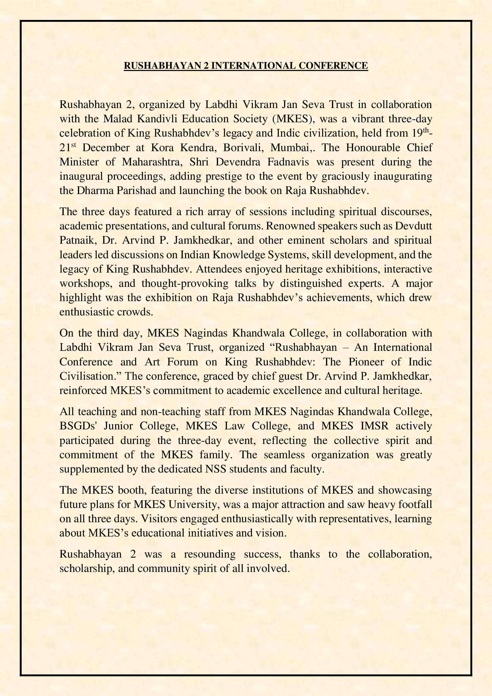 The Malad Kandivli Education Society (M.K.E.S.) has been rendering valuable services in the field of education to the residents of Malad and Kandivli for the last 80 years. It started the Sheth Nahalchand Laloochand High School in 1942.....